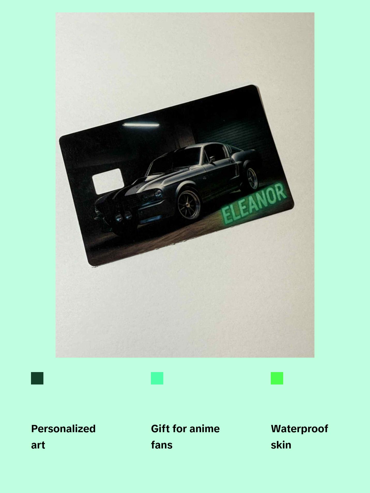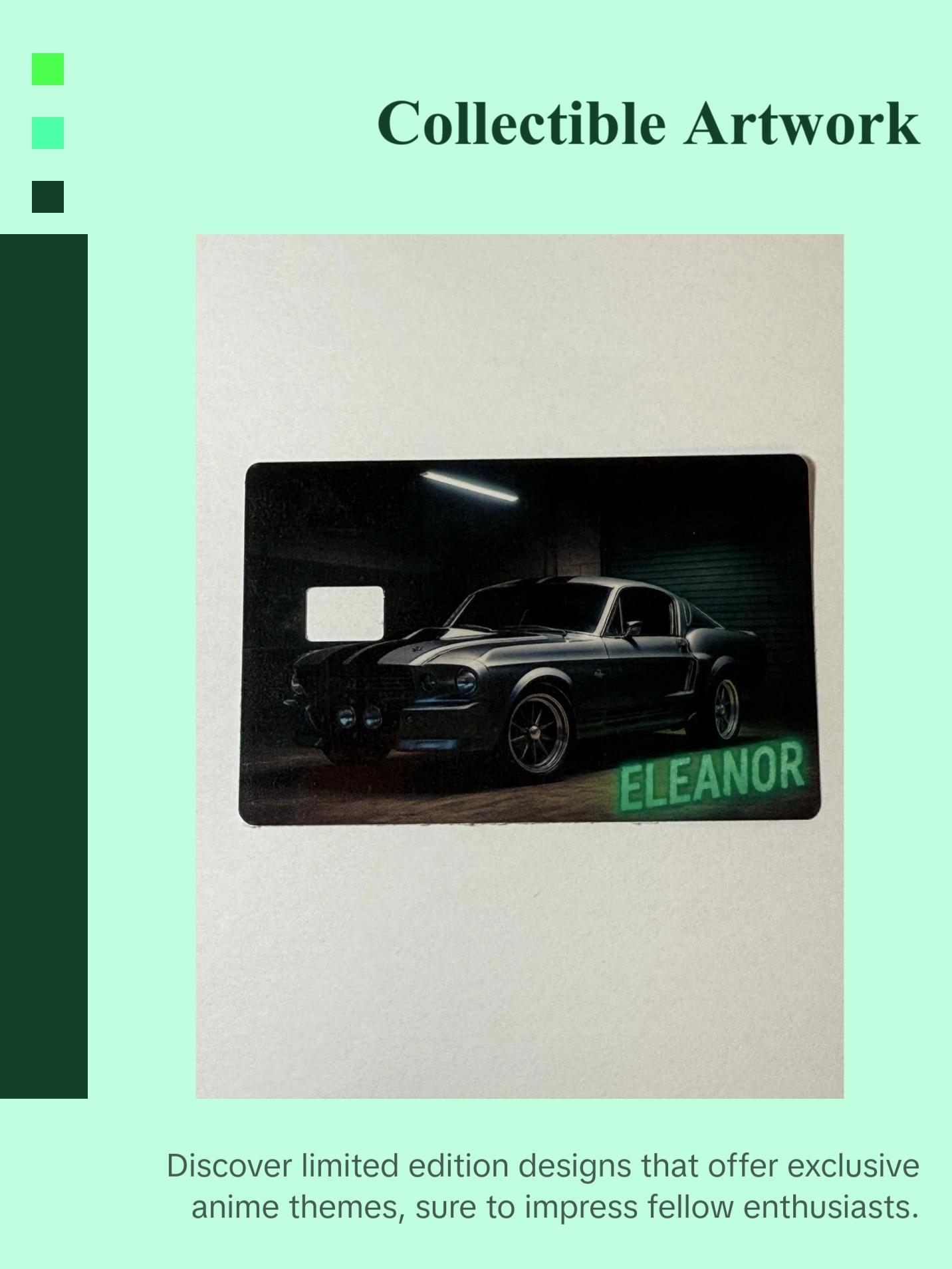 Dive into a world of anime with designs that perfectly reflect your style! Our Eleanor Mustang Design captures your unique flair. Perfect for fans, it offers a secure fit and easy application. Elevate your card with exclusive, rare anime artwork. Collect designs that will make your friends envious and your collection stand out.