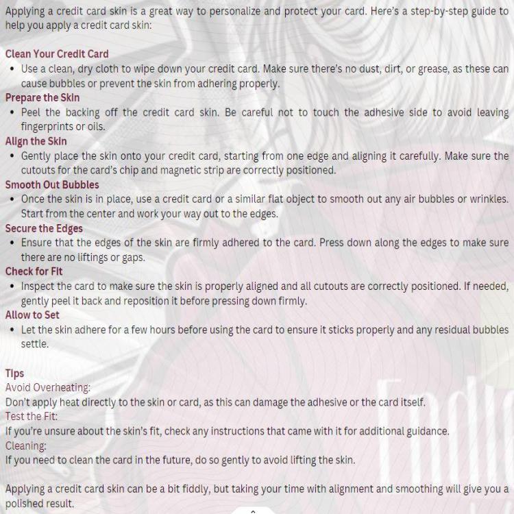 Dive into a world of anime with designs that perfectly reflect your style! Our skins are crafted from durable materials to keep your favorite anime art vibrant. No matter where your adventures take you, your card stays protected. π
